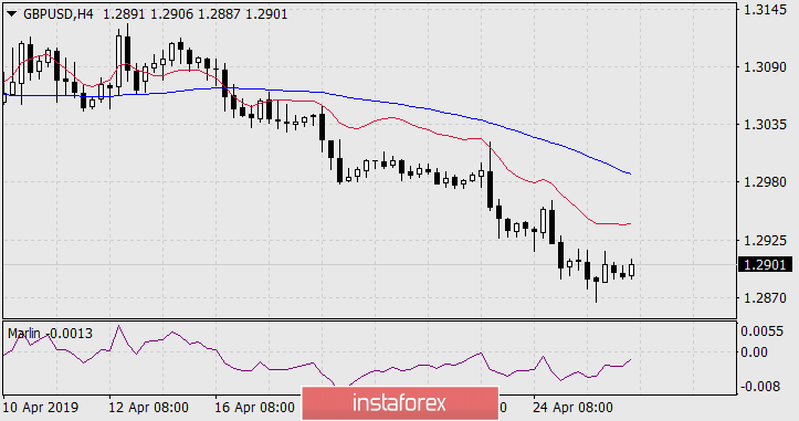 Mas a reversão do euro pode ocorrer hoje. Às 10:00, horário de Londres, o PIB da zona do euro sairá para o 1º trimestre, uma previsão de 0,3% contra 0,2% no 4º trimestre, e aqui os investidores podem experimentar decepções, já que todos os indicadores econômicos anteriores pareciam muito fracos. A previsão é exagerada. Estamos esperando a situação se desenvolver, o euro vai virar nos próximos dias, os alvos são os mesmos: 1,1075, 1,0985.